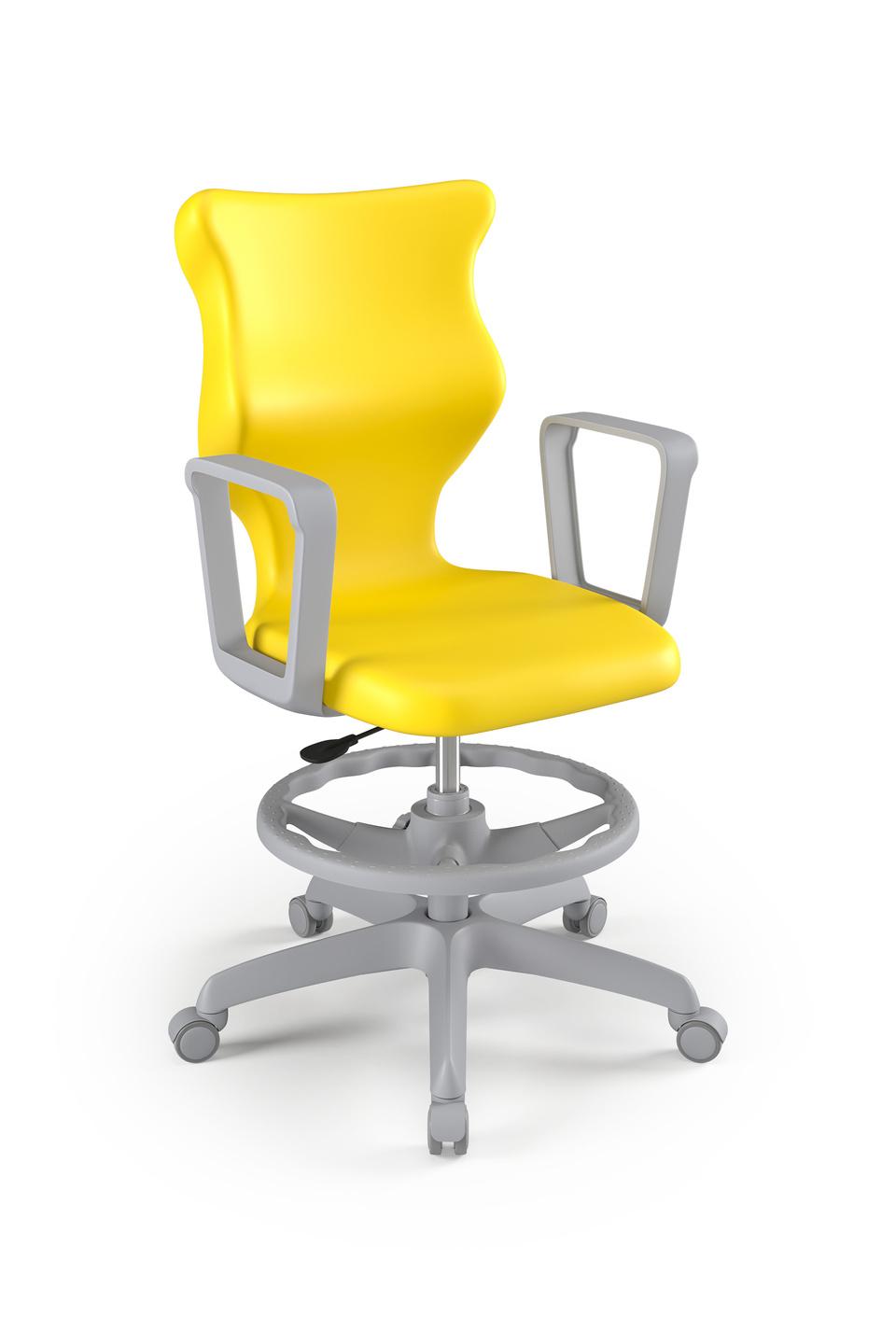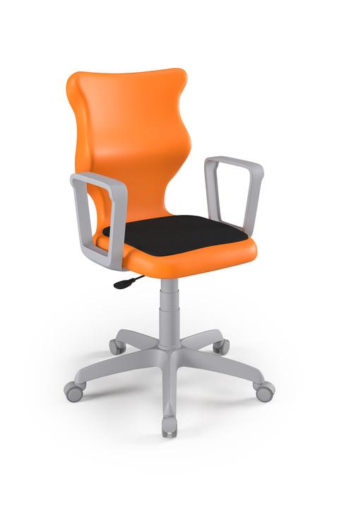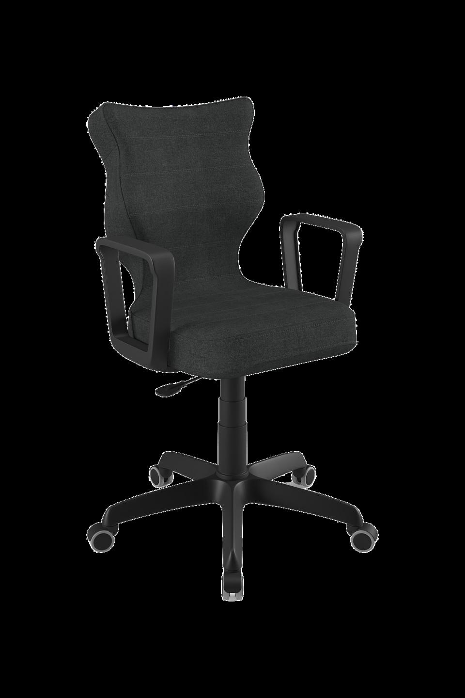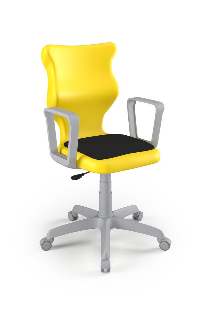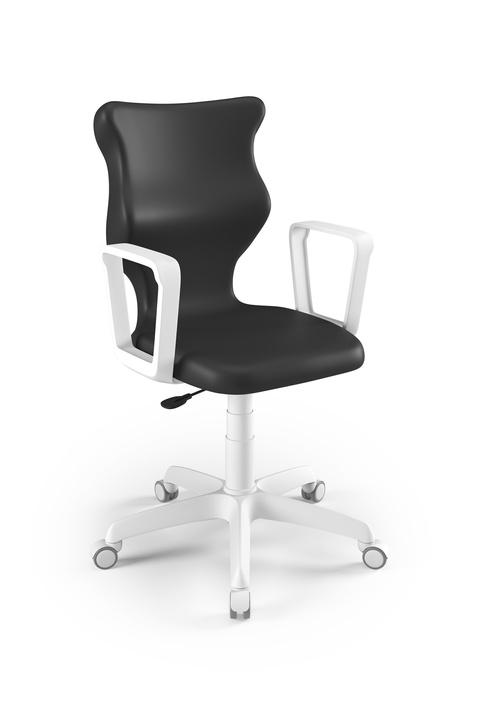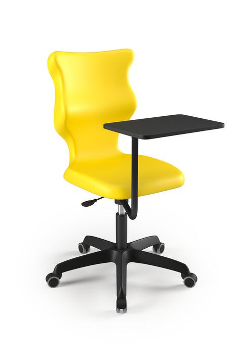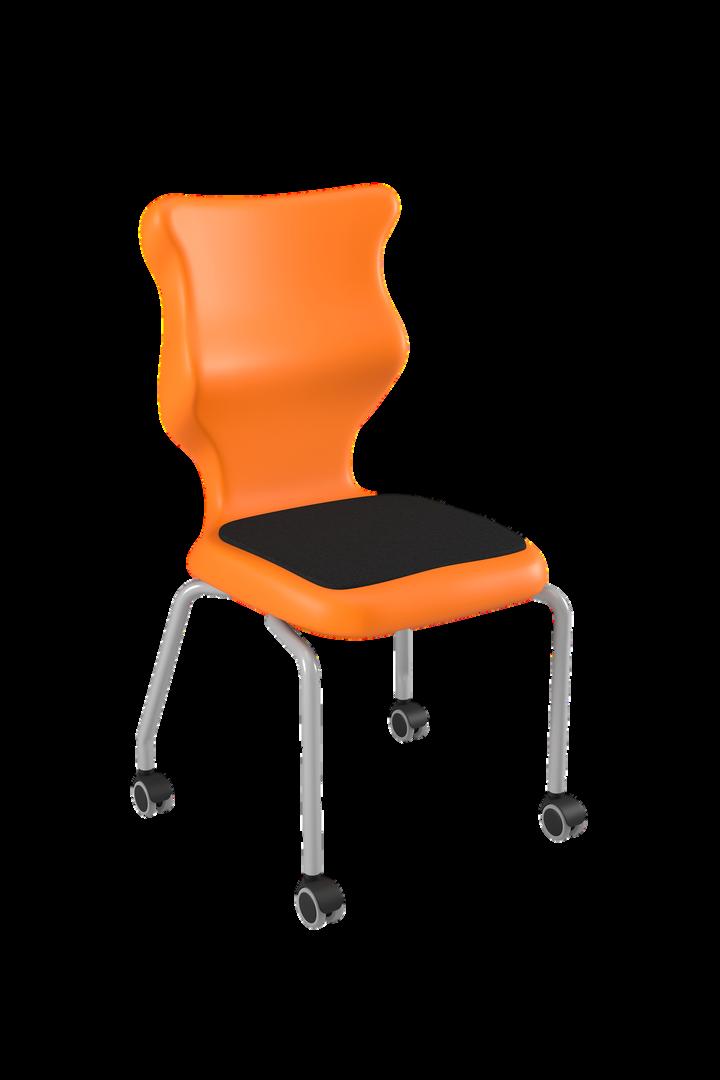 Ponadto konstrukcja krzesła oprócz parametrów ergonomicznych posiada opływowe krawędzie dla bezpiecznego użytkowania przez dzieci Krzesło Entelo dopasowane jest do wzrostu ucznia: tym samym wklęsło-wypukła forma oparcia odpowiednio stabilizuje odcinki kręgosłupa