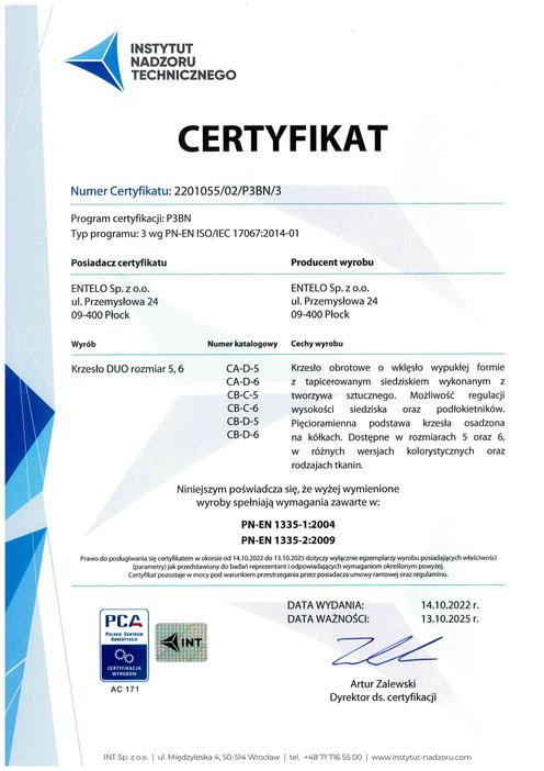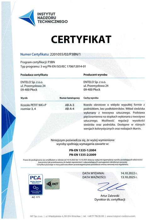 Certyfikat zgodności z normą PN-EN 1729-1:2016-02, PN-EN 1729-2+2016-02 z akredytacją Polskiego Centrum Akredytacji.