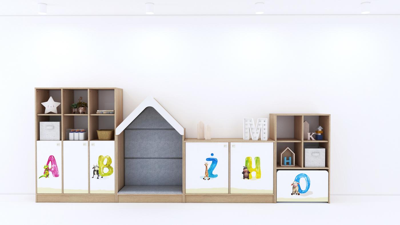 Meble z kolorową grafiką literek pozytywnie nastawiają dziecko do nauki poprzez zabawę