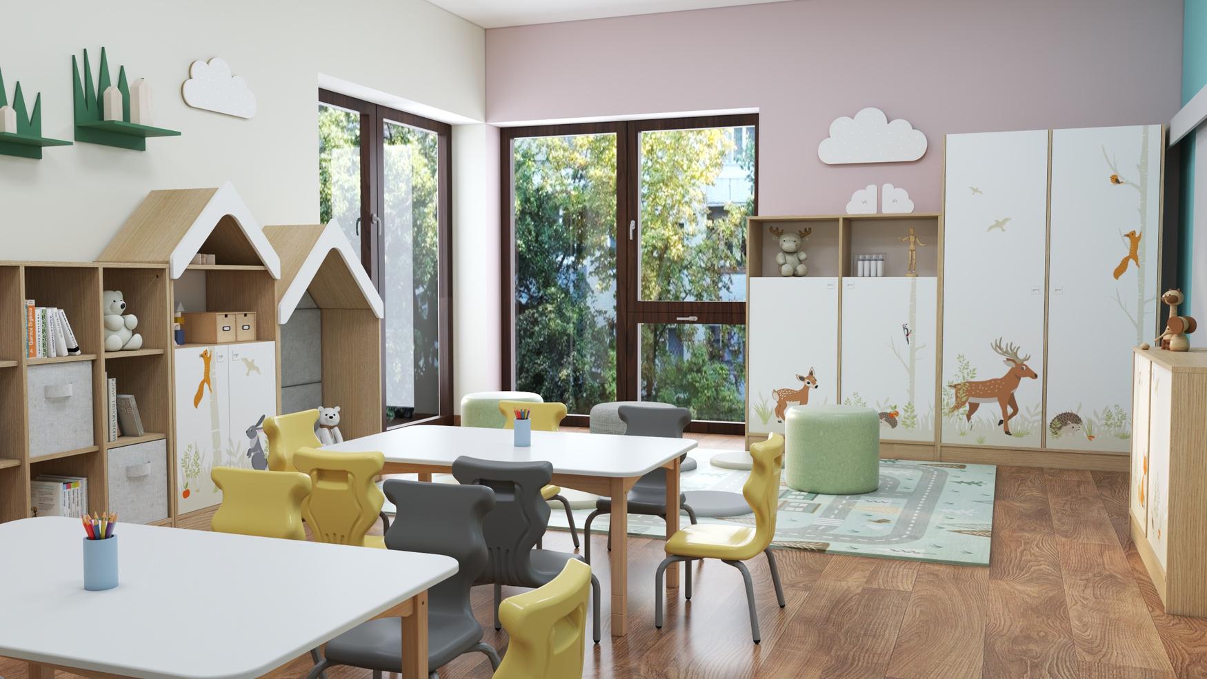 Meble wykonane zostały z wysokogatunkowych materiałów co przekłada się na ich jakość oraz funkcjonalność Nasza kolekcja mebli przedszkolnych występuje w różnych motywach Dzięki czemu sale zabaw mogą być jeszcze bardziej przytulne