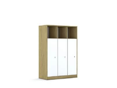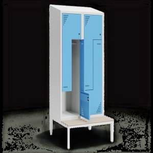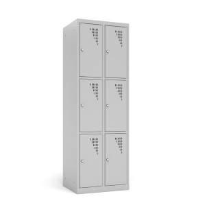 welded construction of the economic cabinet is based on closed profiles the special profile of the double door guarantees the high rigidity of the door doors are equipped with air vents on the side walls of the wardrobe there are openings enabling several wardrobes to be screwed together the cabinet is locked with a key lock with a three-point locking mechanism