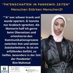 Wir danken allen Pat*innen und Mentor*innen herzlich für ihren unermüdlichen Einsatz und denjenigen, die dieses Engagement möglich machen: den Kolleg*innen aus den zivilgesellschaftlichen Organisationen sowie dem Bundesministerium für Familie, Senioren, Frauen und Jugend für die Förderung! Gemeinsam für Zusammenhalt – wenn nötig, auch auf Abstand.