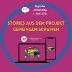 Diese Auswahl vermittelt Eindrücke und Ausblicke auf das vielfältige Engagement in Zeiten des notwendigen Abstandhaltens. Der digitale Aktionstag am 1. Juni 2021 stand deshalb unter dem Motto „#ZusammenhaltaufAbstand“. Vor dem Hintergrund der Corona-Pandemie wurde gezeigt, wie die Engagierten und Organisationen einfallsreich und agil trotz der Einschränkungen des gesellschaftlichen Lebens ein Miteinander aufrechterhalten. Die Beteiligten ermöglichten Einblicke in ihre Aktivitäten mit Videos, Live-Talks, Podcasts und anderen Formaten.