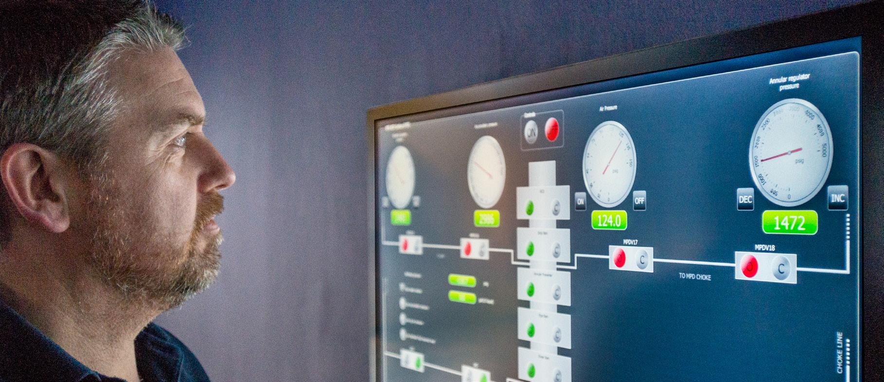 simulator,” Grants adds. “The topside for the equipment, tools and the custom view from where the driller would operate, and the downhole – the part that nobody sees. That is where we have very complex hydraulic models that look at the pressures that are exerted at any one time, in any part of the well. Be that gas expansion, fluid, mud rates, well direction – they all have different challenges and we can build all of that into the downhole environment.”
