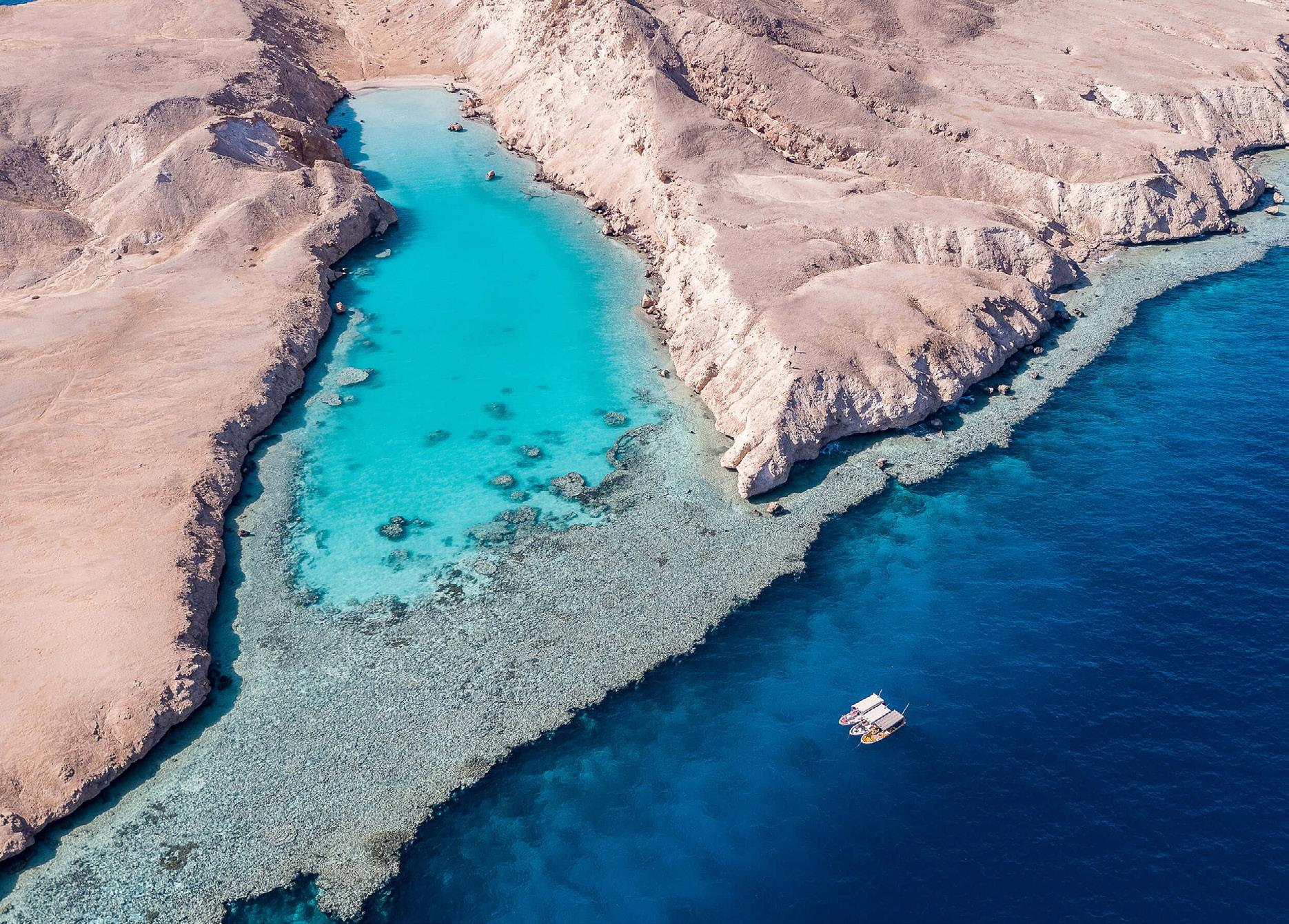// NEOM IS LEADING A TEAM OF THE BRIGHTEST MINDS IN ARCHITECTURE, ENGINEERING AND CONSTRUCTION TO MAKE THE IDEA OF BUILDING UPWARDS A REALITYA bird’s eye view of boats anchored off of Yabou’ Island - Marc le Cornu