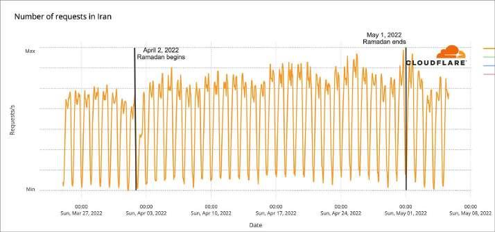Afghanistan, Pakistan, Indonesia, Morocco, Libya and Turkey had the biggest increase in traffic before sunrise. After sunset, it was Saudi Arabia, Tunisia, Bangladesh, Pakistan that showed a clear decrease in traffic after sunset.