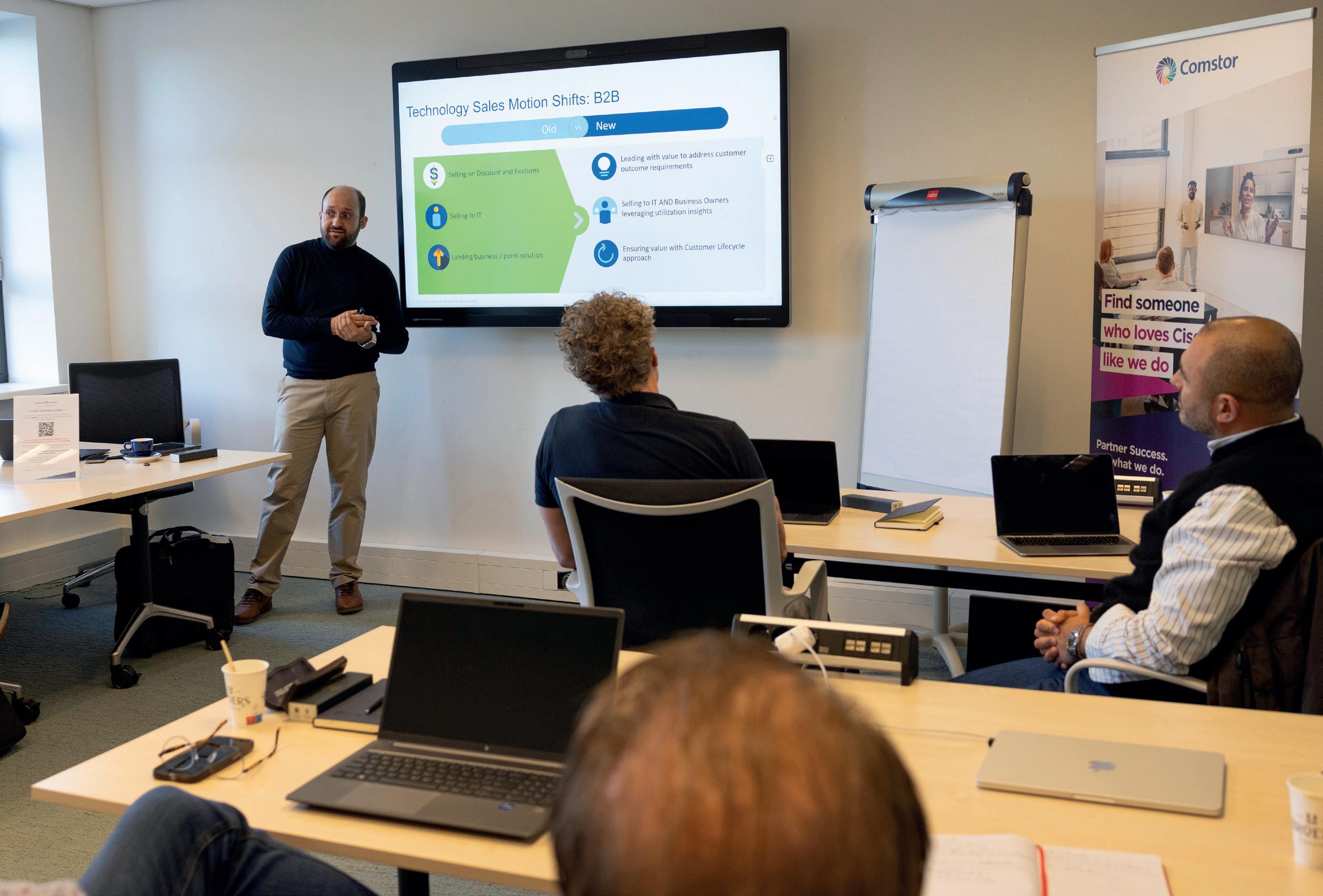 stor levert apparatuur, en vult dit aan met kennis en ondersteuning in samenspraak met de leverancier. Scholing: “Wij zien Comstor als een verlengstuk van ons kennis- en supportteam. De specialisten van de distributeur ondersteunen ons met productselectie, engineering en training. Ook bieden ze marktkennis en toegang tot Cisco’s innovaties. Zo fungeert Comstor als schakel tussen Cisco en ons, wat ervoor zorgt dat we snel oplossingen kunCOMSTOR-PARTNER
