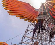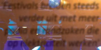 jaar bezig met het festival. In mandagen is dat misschien acht procent van de energie die uiteindelijk het event in gaat. De capaciteit op het gebied van uitvoering komt van onze partners vandaan. We dagen hen ook altijd op een goede manier uit en zijn niet heel rigide in onze instructies. We geven vaak een schets en vragen: ‘Wat kun je hiermee?’ Iedereen, van decor tot front of house-partijen, krijgt hierdoor op een po-
