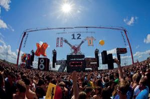 die via YouTube live gingen streamen. Dat ging door het dak en niet alleen in ons eigen land. In het buitenland kwamen liefhebbers er ook achter dat dit een speciaal feestje was. In de eerste zeven jaar van Defqon.1 kwam het overgrote deel van onze bezoekers uit Nederland. Tegenwoordig is dat nog maar de helft. In totaal krijgen we bezoekers uit 96 landen, bizar als je er te lang over nadenkt. Ineens spraken we niet alleen met mensen uit ons eigen land, maar met bezoekers over de hele wereld.” Defqon.1 kan dus probleemloos als toeristentrekker de boeken in. Tijdens het laatste