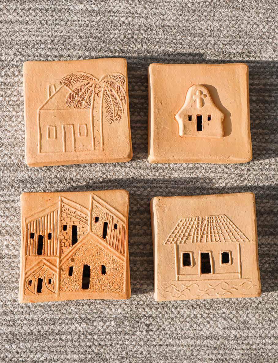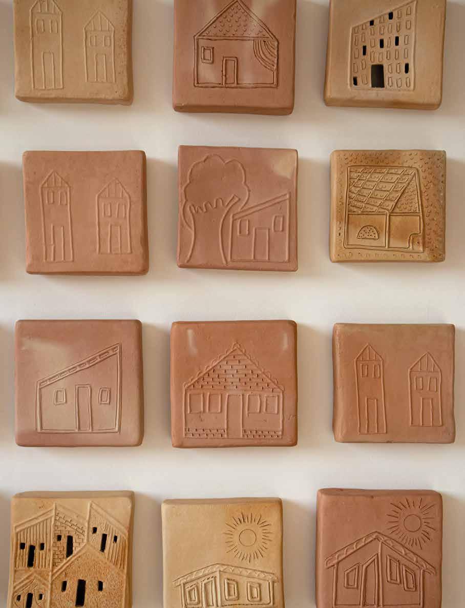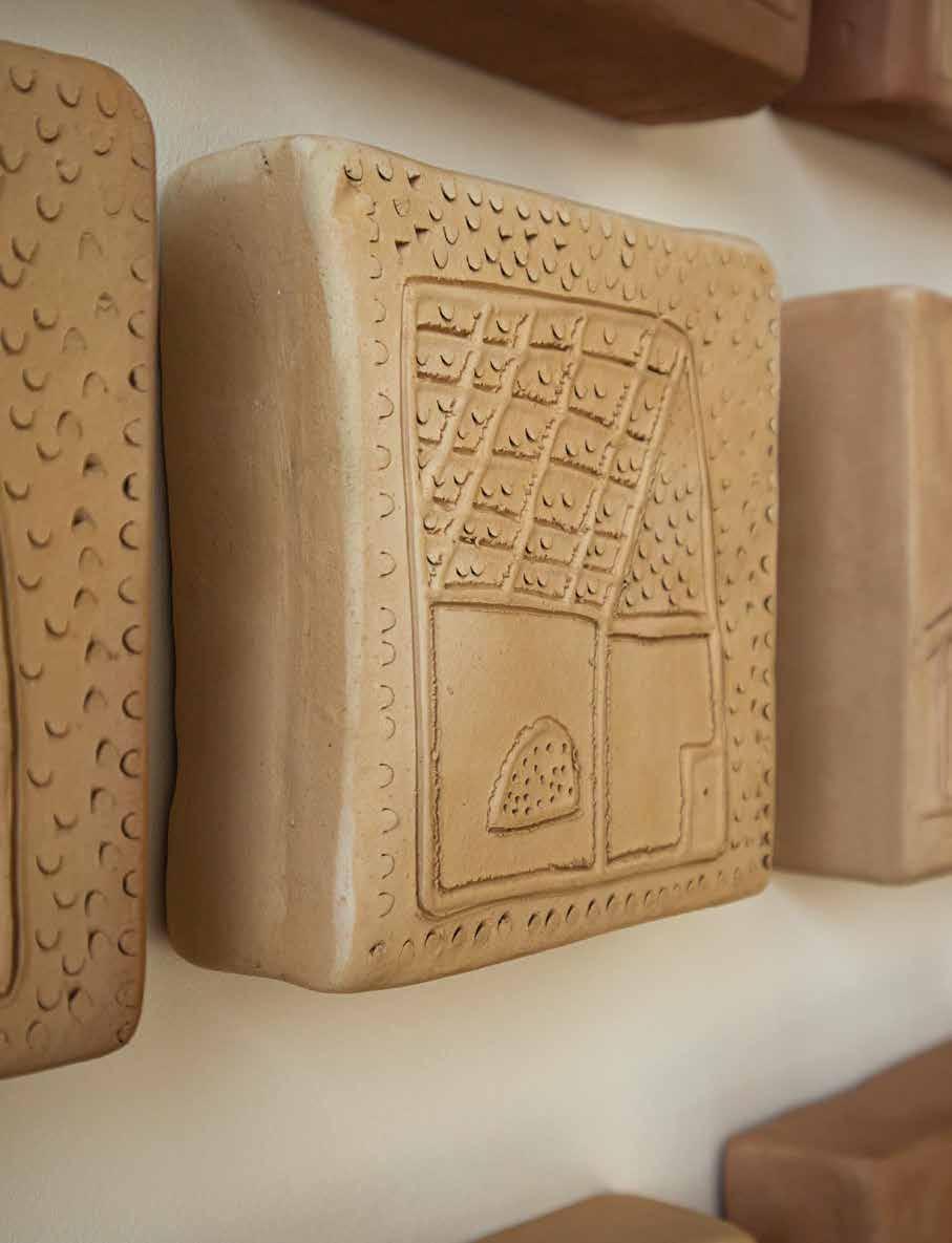 Embora tenha sido criada para a CASACOR São Paulo 2024, o mais interessante para nós, porém, é que o projeto nasceu a partir do contato do Gabriel com a comunidade durante a sua pesquisa “Os Brasis que vi”, no pós-pandemia. Estas cerâmicas são miniesculturas em forma de tijolos e representam os diferentes tipos de moradias brasileiras.