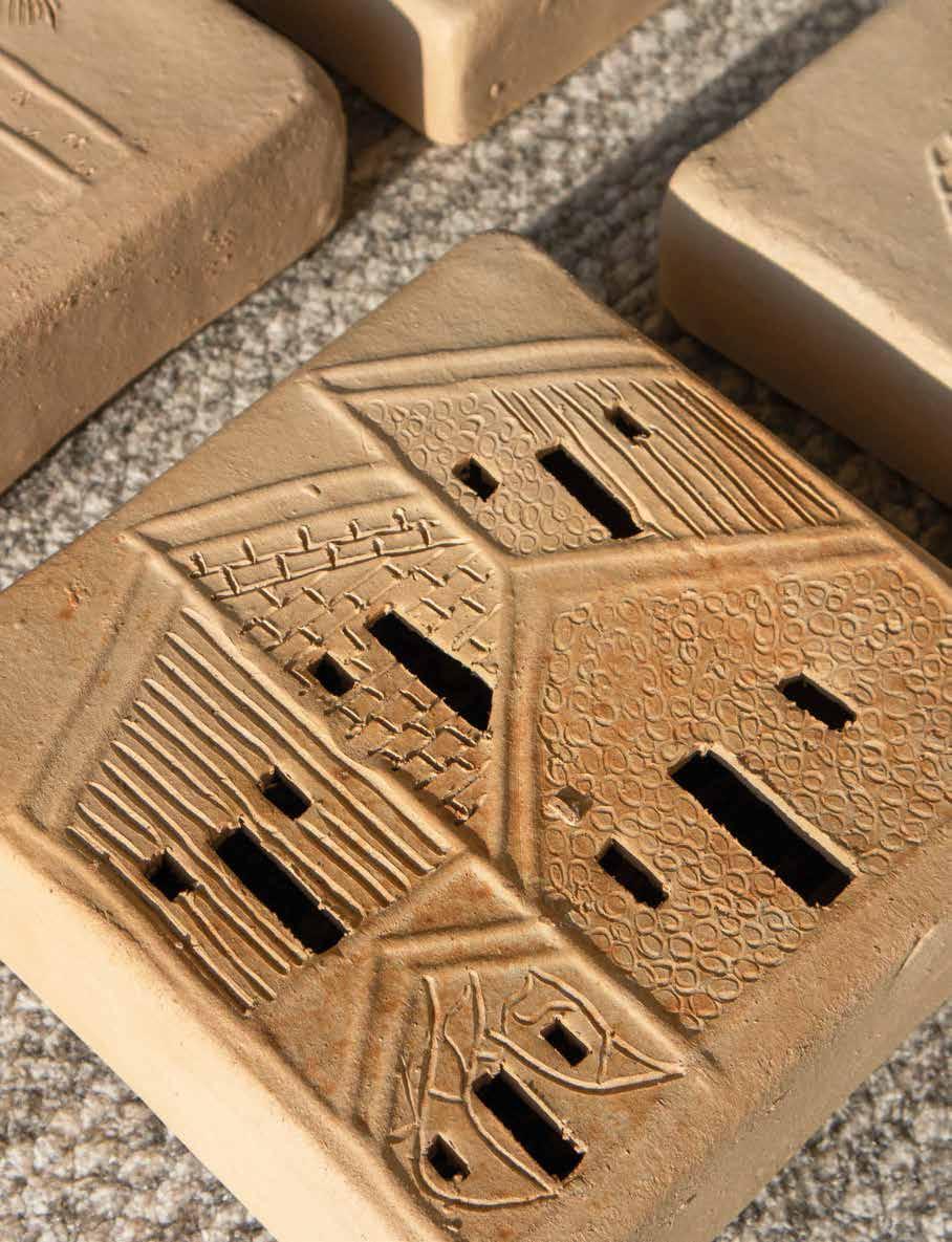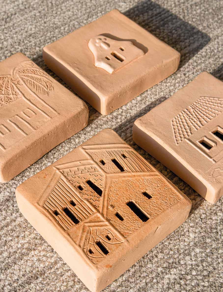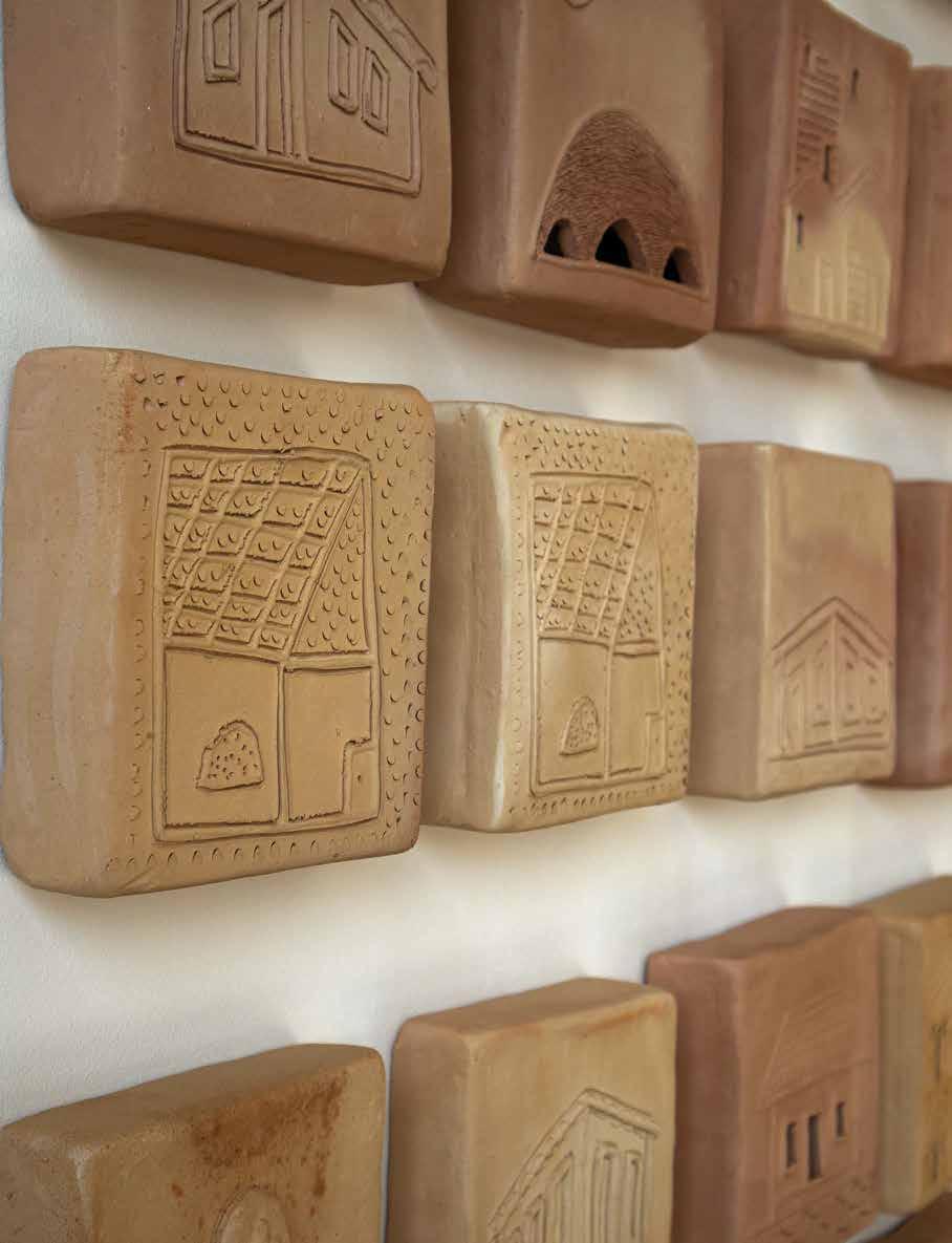 Embora tenha sido criada para a CASACOR São Paulo 2024, o mais interessante para nós, porém, é que o projeto nasceu a partir do contato do Gabriel com a comunidade durante a sua pesquisa “Os Brasis que vi”, no pós-pandemia. Estas cerâmicas são miniesculturas em forma de tijolos e representam os diferentes tipos de moradias brasileiras.
