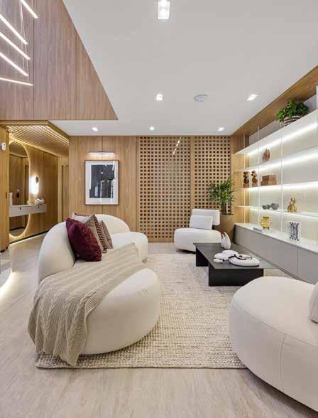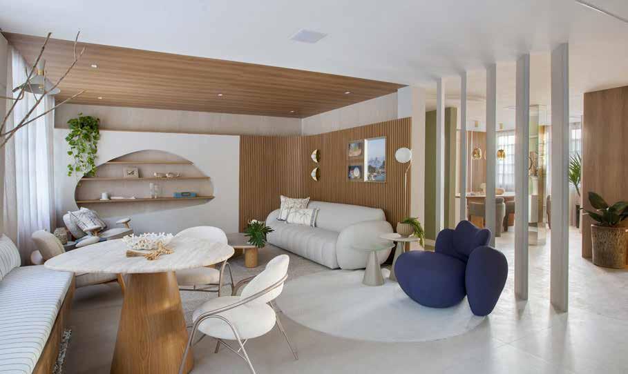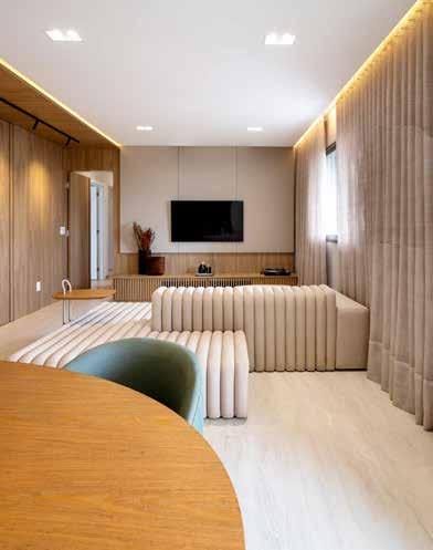 Todo o projeto valoriza texturas naturais, formas fluidas e integração visual, resultando em um espaço equilibrado, agradável e acolhedor, e também com forte identidade.