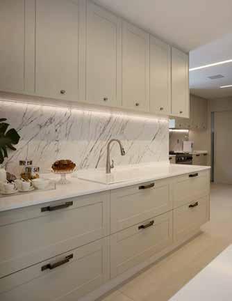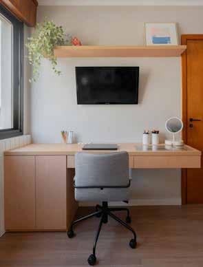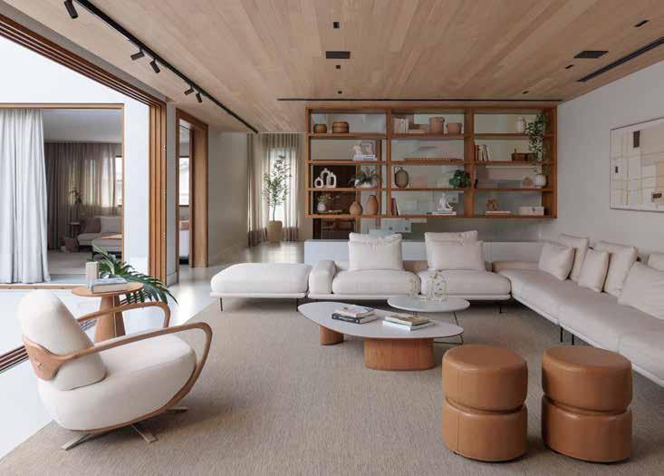 A marcenaria de toda a residência seguiu uma linguagem única, com foco em tons neutros, reforçando a harmonia entre os espaços. O resultado é uma casa integrada, leve e aconchegante, com uma estética contemporânea e atemporal.