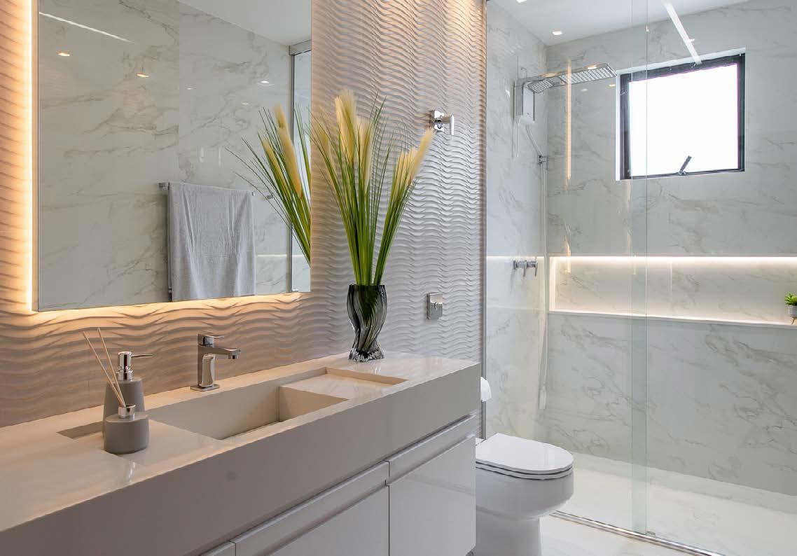 A iluminação, as cores e os acabamentos influenciam diretamente na sensação de aconchego e luxo, tornando esses espaços ainda mais convidativos.