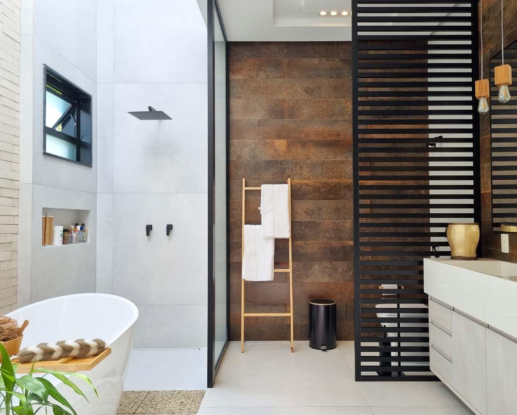 cionando ao espaço um toque simultaneamente rústico e sofisticado e criando uma atmosfera singular. O grande destaque ficou por conta da entrada de luz natural em todo o ambiente por meio de uma claraboia, projetada a partir de um rasgo no teto que toma toda a área de banho.