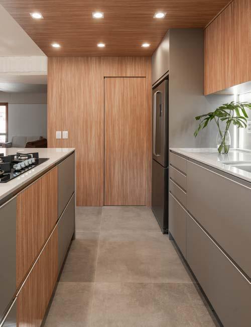 lidades quentes e terrosas, imprime textura e calor. Desse modo, há equilíbrio entre sofisticação e aconchego, tendo sempre em foco o máximo aproveitamento do espaço.