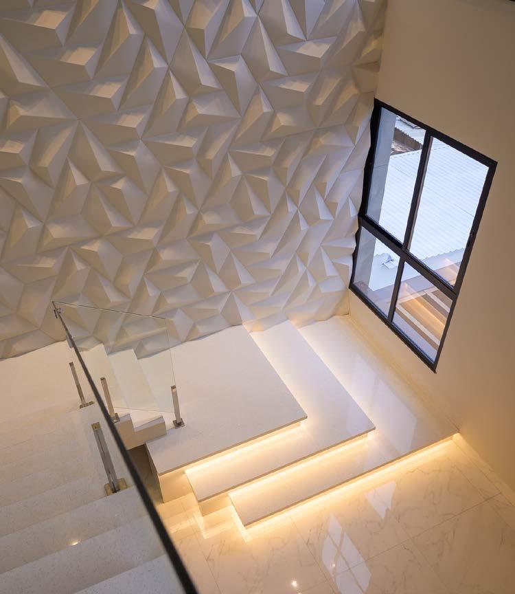A casa de três andares abriga uma família composta por um casal que habita o primeiro piso, enquanto o jovem filho e sua esposa vivem no segundo e no terceiro andar.