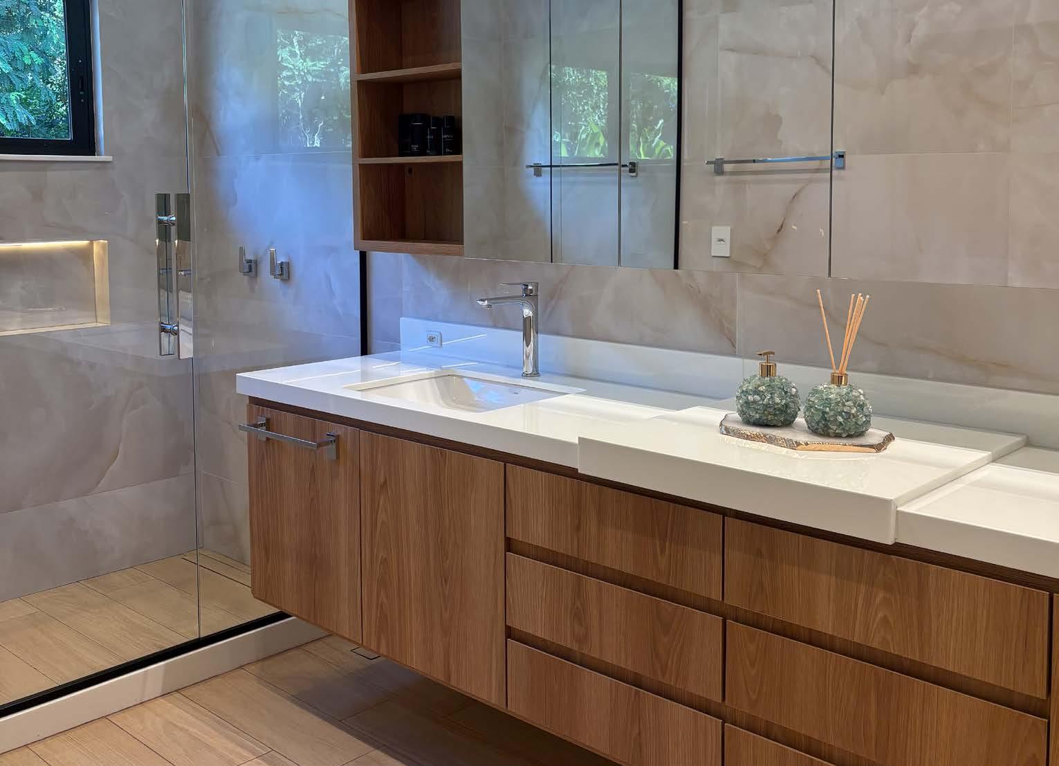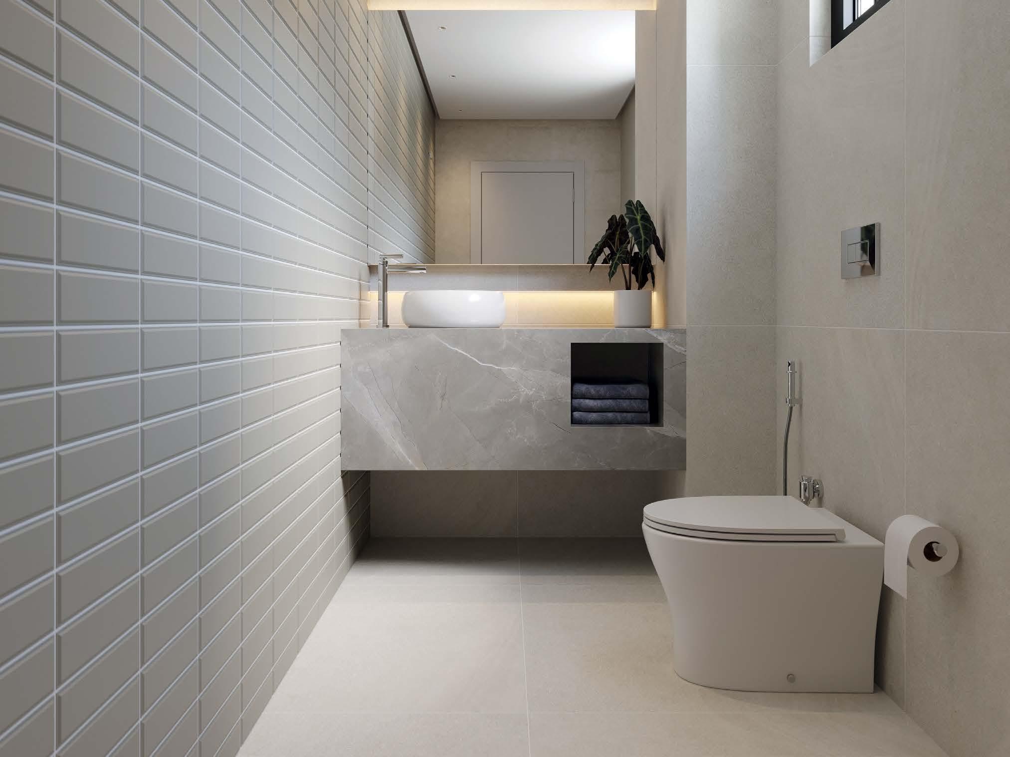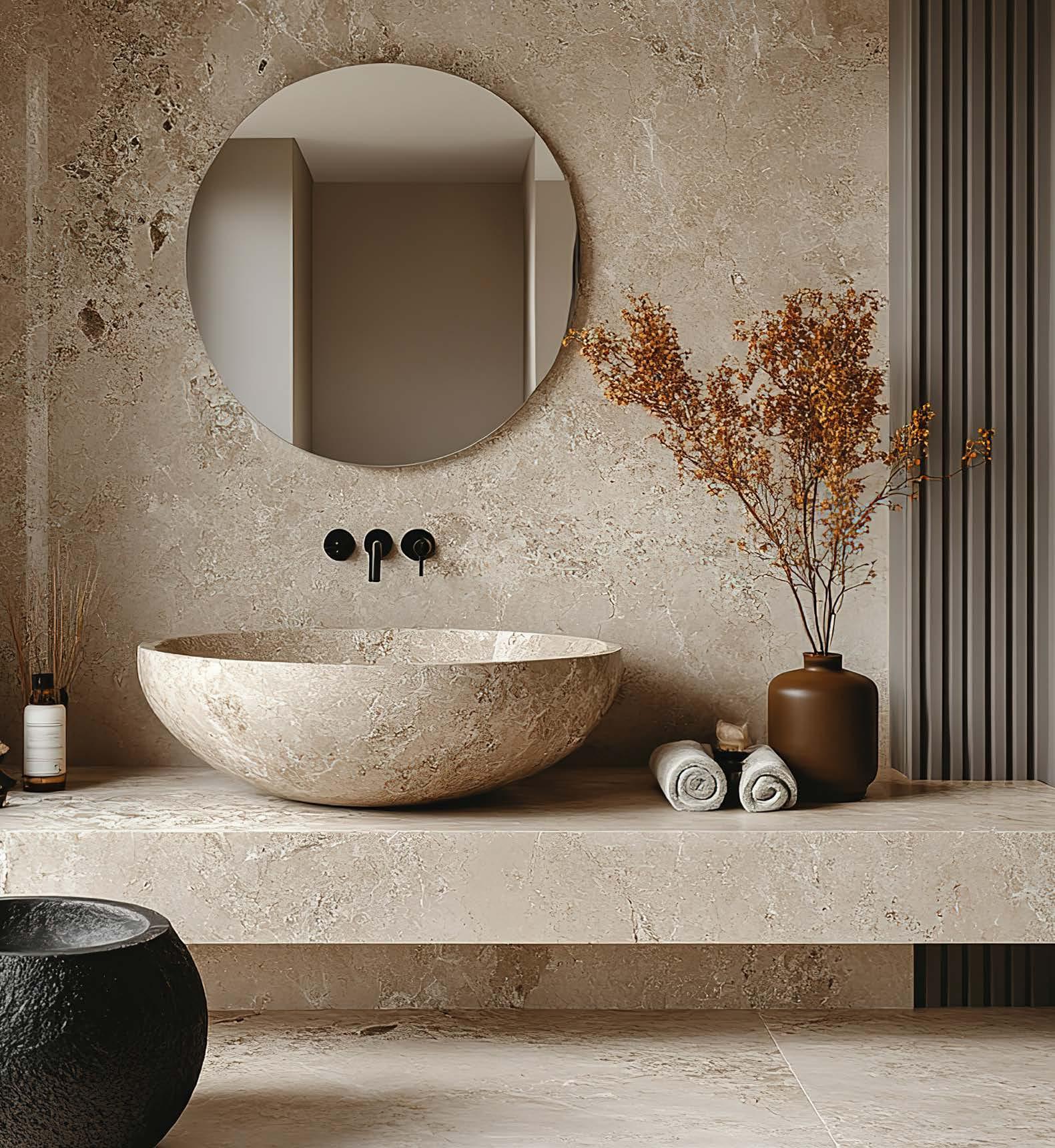 O banheiro é um espaço de transição: funcional, sensível e durável.