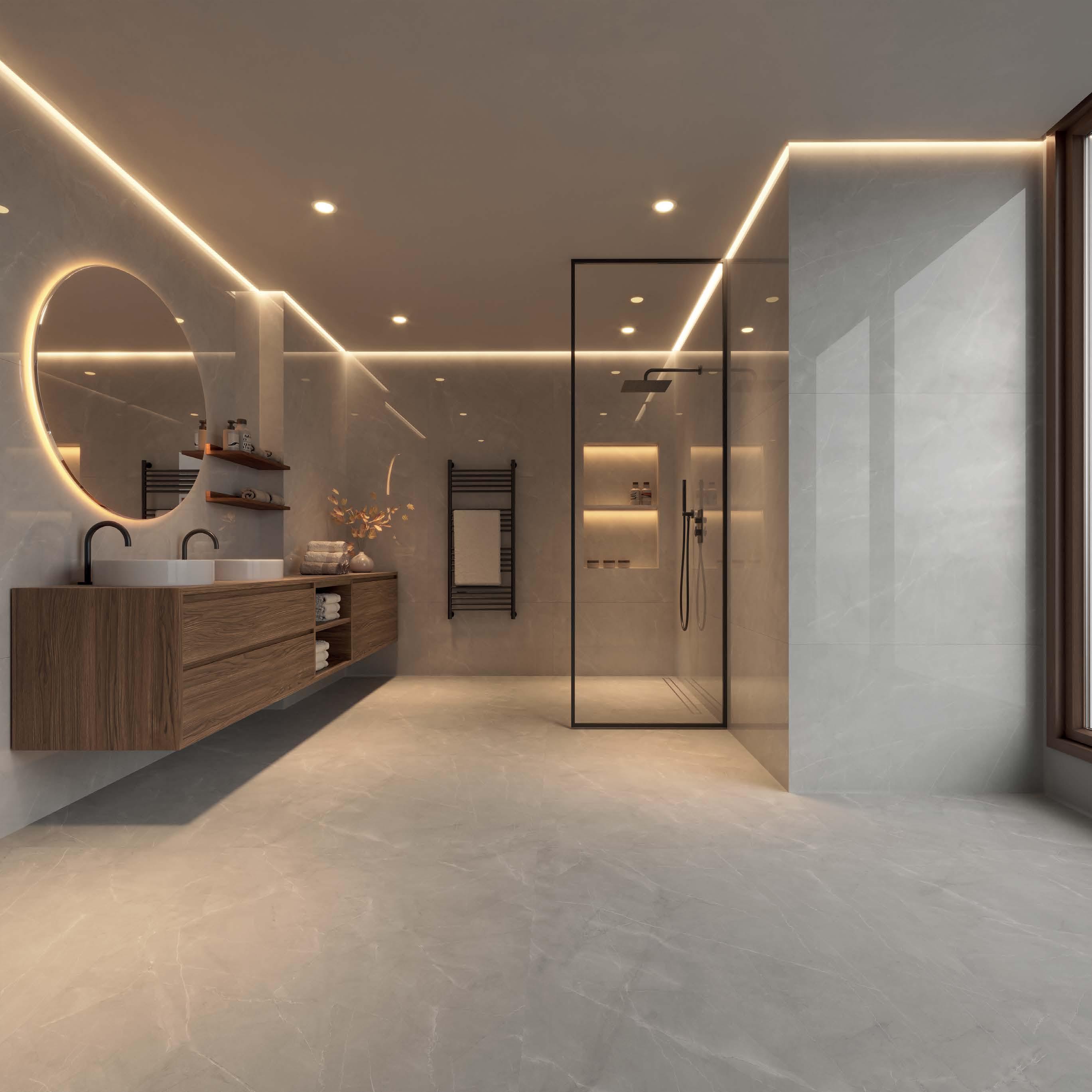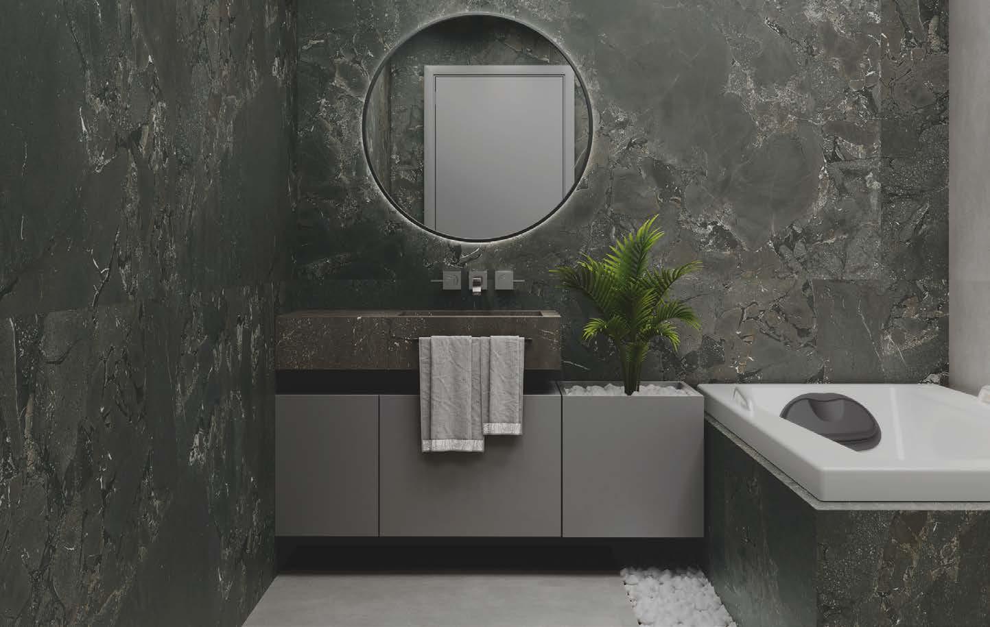 a precisão dos detalhes e a qualidade técnica dos porcelanatos Castelli permitem composições sofisticadas, equilibrando resistência, praticidade e beleza. Cada escolha contribui para criar banheiros que vão além da função, tornam-se cenários de conforto, contemplação e identidade.