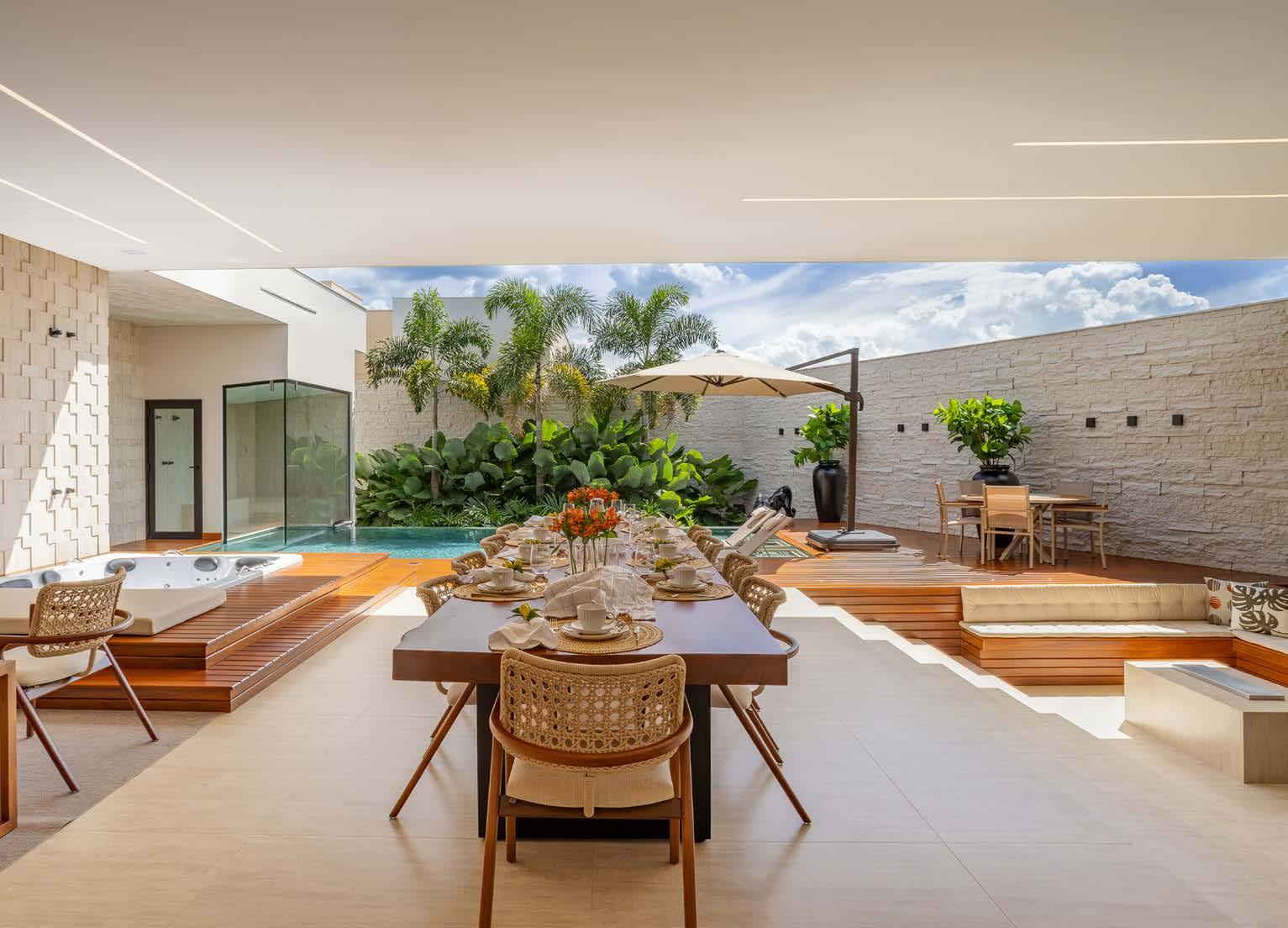 A sala de jantar também se interliga ao amplo espaço gourmet,