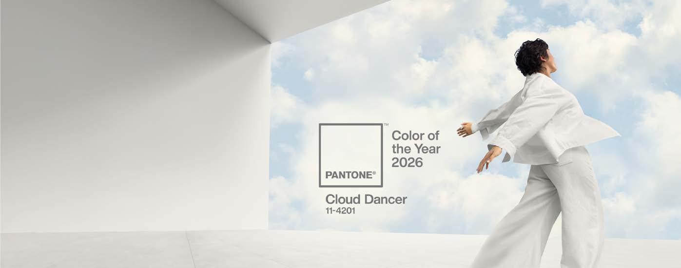 Neste ano a Pantone optou por uma tonalidade neutra e suave, o Cloud Dancer (PANTONE 11-4201). Trata-se de um branco etéreo e arejado, que simboliza calma, pausa, clareza, sugerindo a ideia de recomeço em um mundo barulhento, como uma espécie de convite à renovação e à simplicidade consciente.
