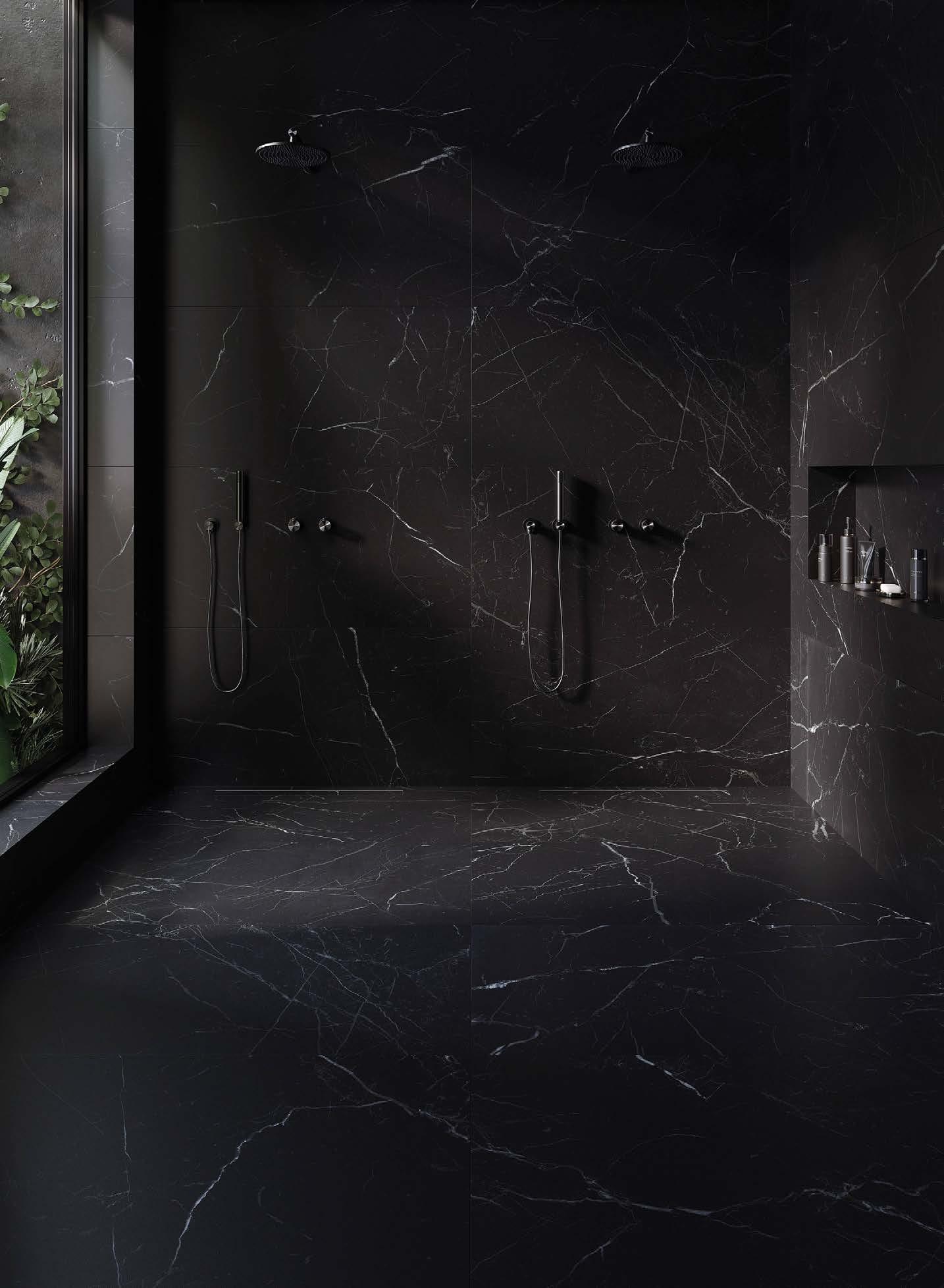 Marquina integra a categoria Ultrastone, que une solidez mineral, ultrarrealismo e alta performance. A força das pedras naturais reinterpretada para espaços contemporâneos.