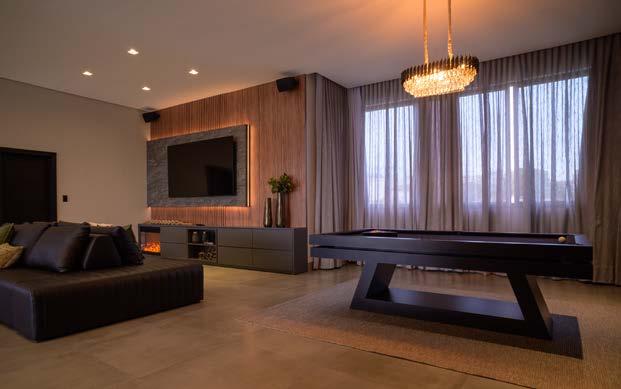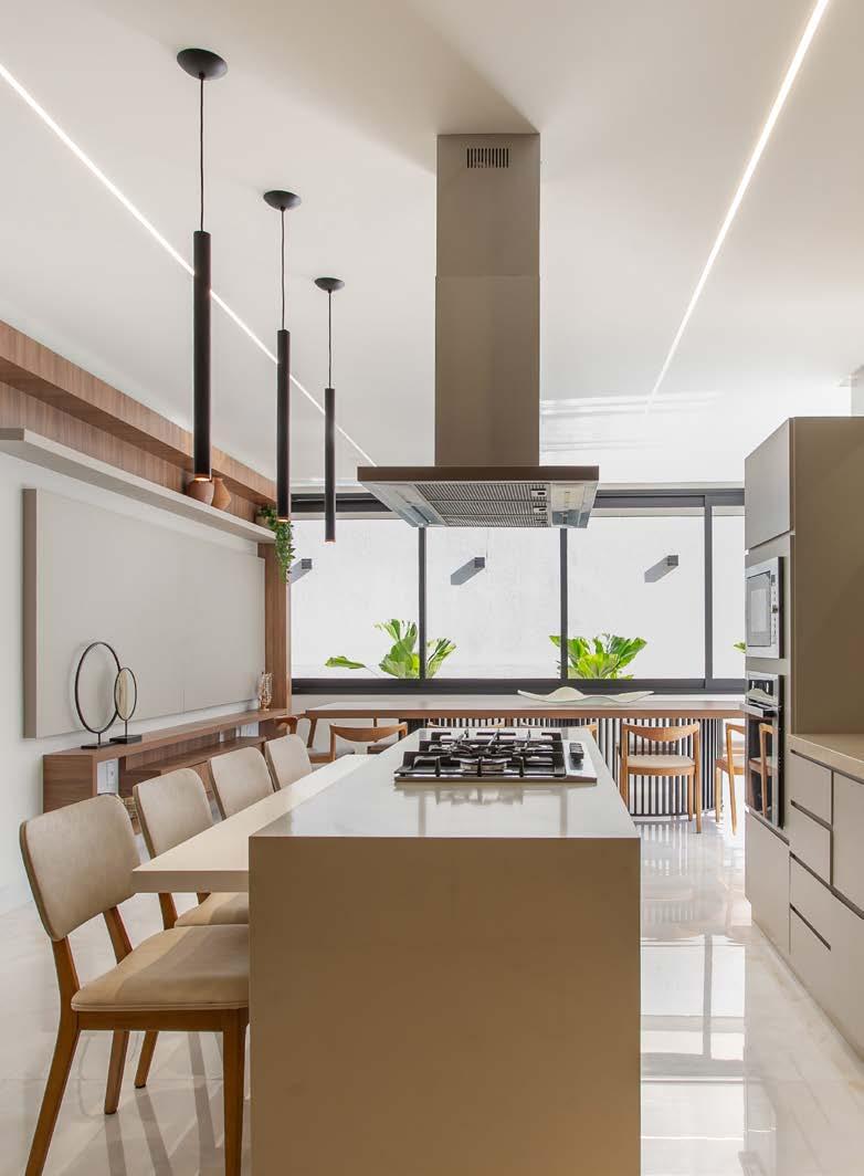 lidades quentes e terrosas, imprime textura e calor. Desse modo, há equilíbrio entre sofisticação e aconchego, tendo sempre em foco o máximo aproveitamento do espaço.