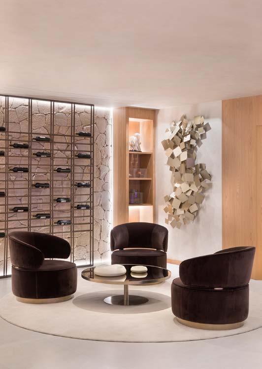 Para o SPA, instalado dentro da piscina, o objetivo foi unir o relaxamento visual com o corporal. O material escolhido para o revestimento foi o mesmo da piscina. A sauna também foi estruturada dentro da concepção geral do projeto: panorâmica em toda a sua dimensão, oferecendo um esplêndido visual da natureza circundante, sendo paginada com o revestimento Pipa 20x20 cm.