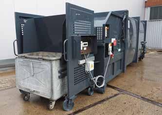 Løftevenderen er integrert og montert i front på avfallskomprimatoren.