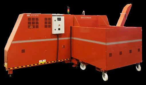 Brickmann 1200C er konstruert for krevende miljøer med ekstra forsterkninger: Forlenget pressylinder, automatisk smøring av pressplate, forsterket materiale i presskammer, pressplate, saxstål, stempelstang og utkastarm.
