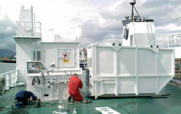 Komprimatoren er konstruert slik at henting med liftbil og tømming med kran blir enkelt. Ideell også for plattformer, byggeplasser og båter til havs.