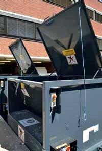 En komprimator for restavfall og en for papp/papir.