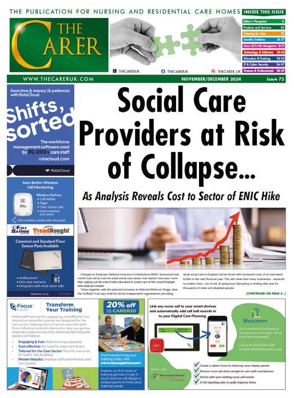 The Carer is an informative print and sectors only weekly digital title for the nursing and residential care home sector, delivering latest news, views, in-depth articles, products and services and distributed to key sector decision makers Visit www.thecareruk.com