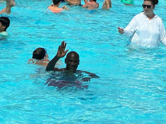 It was special. It was a big event and a lot of money to pay for it. I ate some watermelon, grilled chicken, and I tricked Anthony on the water balloon. I squeezed it! We invited the guests. Cyclists. We just sat down for the next couple hundred hours, then we put the tables together. And we got cold water in the cooler.
