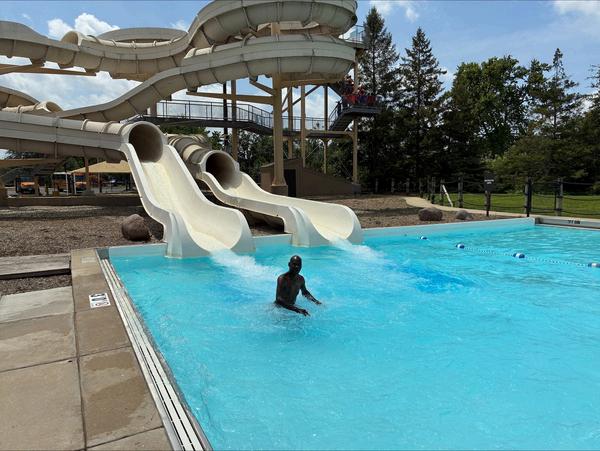 Hello, my name is Tony, I go to Nashville We chose to go to Mystic Water Park on Thursday It was a hot day, and I wanted to cool off. There were a lot of people, and everyone was very nice. We went in the locker room to change and shower. The water was warm I went down the slide, it was high up with a lot of stairs We waited in line, and it was fun I would like to go back again soon. Everyone had fun.