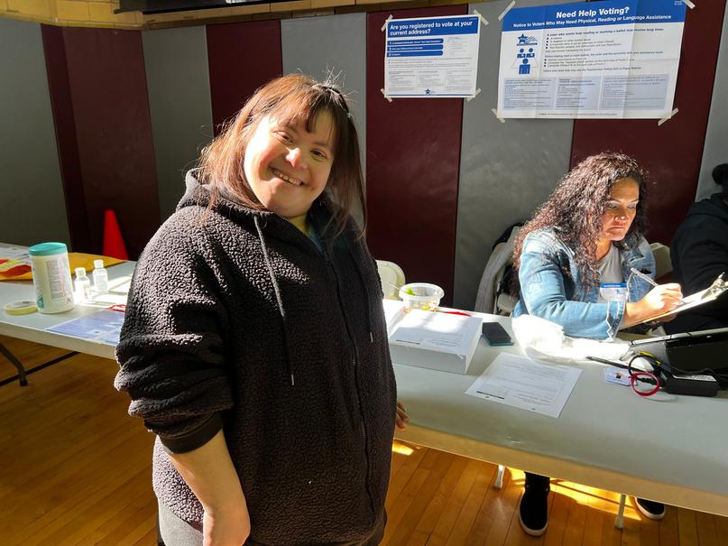 By Jamie P.I went to Gary High School I see people I say, "Hi " I see my name and my address The person ask me checking the name. They gave me the card for electronic voting. They say my name and let me talk to the guy. I sit down in the screen and who's gonna be mayor to vote Then after I'm done with that, I scan the paper inside the voting box Then the person give me the "I voted" sticker.