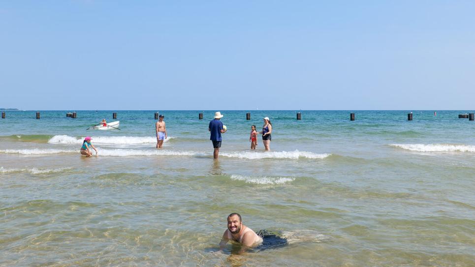 It was a lot of fun. I want to go back there. We had a fun time! We played football on the beach with me, Jimmy, Hannah, Vahid, Sheila, the twins, and Agnes. We took the bus. We got there. I got so much tan! I shouldn't have got that much tan. I should've put sunscreen on. It was hot! I just want to go back there. We went to North Avenue Beach. The water was cold.