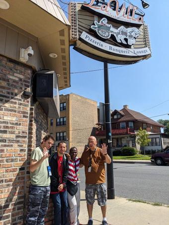 We drove. One of our staff drove us. We drove down there. We went to the hotel. Two beds and a TV in there. Separate rooms for the clients. Key cards for the bedroom. We went swimming. I swam. We went to the bumper cars, a bumper car race We ate I had pizza We go to dinner after that We went to the restaurant We ate and came back home We went to the museum Wisconsin Dells I saw statues of Optimus Prime and Bumblebee. I saw it. We took pictures of it all. I won that tournament. We saw Indiana Jones then went to the haunted house. I won that contest! I