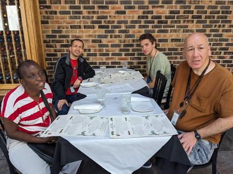 I enjoyed beef, chocolate, whipped cream, and bread, butter, lasangna, Pepsi The table Italian Where we went had sandwiches too. Luis, Sheila, Cody, Mari went.