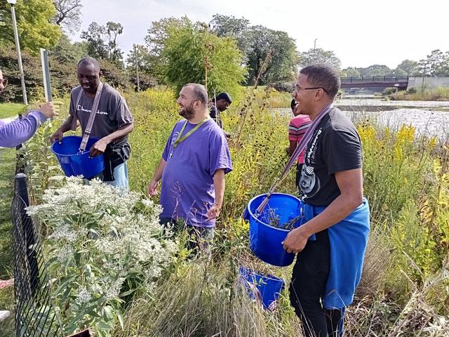 We went to Humboldt Park for the Stewardship Event. We pulled weeds and seed. Michelle said “that was good” when speaking on the seed pulling and “I did the best I can ” Michelle also let us know that she was hot, but she enjoyed herself. Tiffany shared that “it was good.” Jerome shared in his own words that he was “picking some weeds out the bush" and “I liked it ” John also attended the event and said, “I like it” and shared that he “met a new girl” from a different center and that it was “good”.