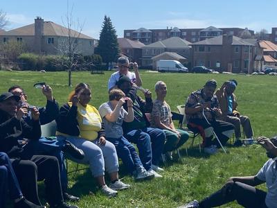 Abdul S.: I loved watching the Eclipse I saw the moon covering up the sun I wore glasses to protect my eyes because the sun was bright. I felt happy while watching the Eclipse in the park with my friends. I felt good.