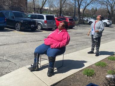 On Monday April 8, 2024 I saw the Solar Eclipse. It was beautiful. It was the Bomb! Cool! Awesome! The moon was 1 to 2 inches to cover the whole sun. I held up a sign that says Honk For The Eclipse. I had fun.