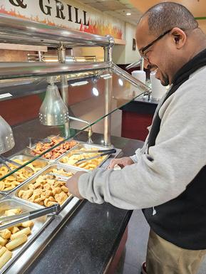 Today I went to the buffet with some of my peers. I was really excited to eat chicken nuggets and fries. That's my favorite food