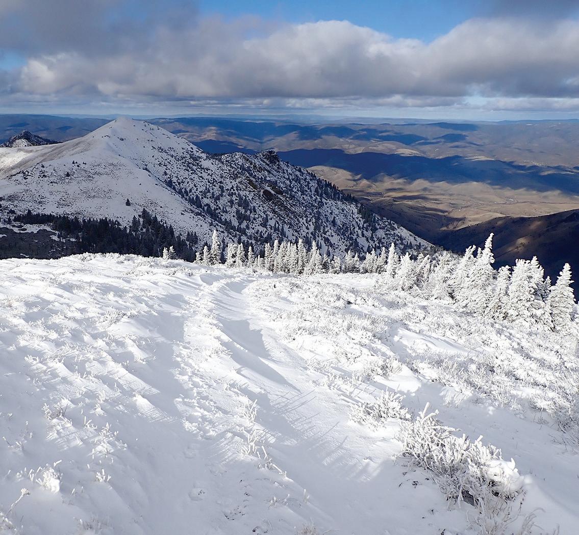Strawberry Mountain is the centerpiece of the 19,620-acre Strawberry Mountain Wilderness, a rugged landscape draped in conifer forest and dotted with scenic lakes and tumbling streams. At 9,038 feet, Strawberry Mountain is also the highest peak in the wilderness, offering far-flung vistas from its rocky, pyramidshaped summit — and a challenging day’s walk for fit, experienced hikers, with 3,300 feet of elevation gain and a roundtrip distance of 12.8 miles. Along the way you’ll pass scenic Strawberry Lake and Strawberry Falls, either of which makes a fine destination for a shorter hike. Watch for mountain goats as you climb into the high country, where sweeping views of the John Day Valley open up before you.