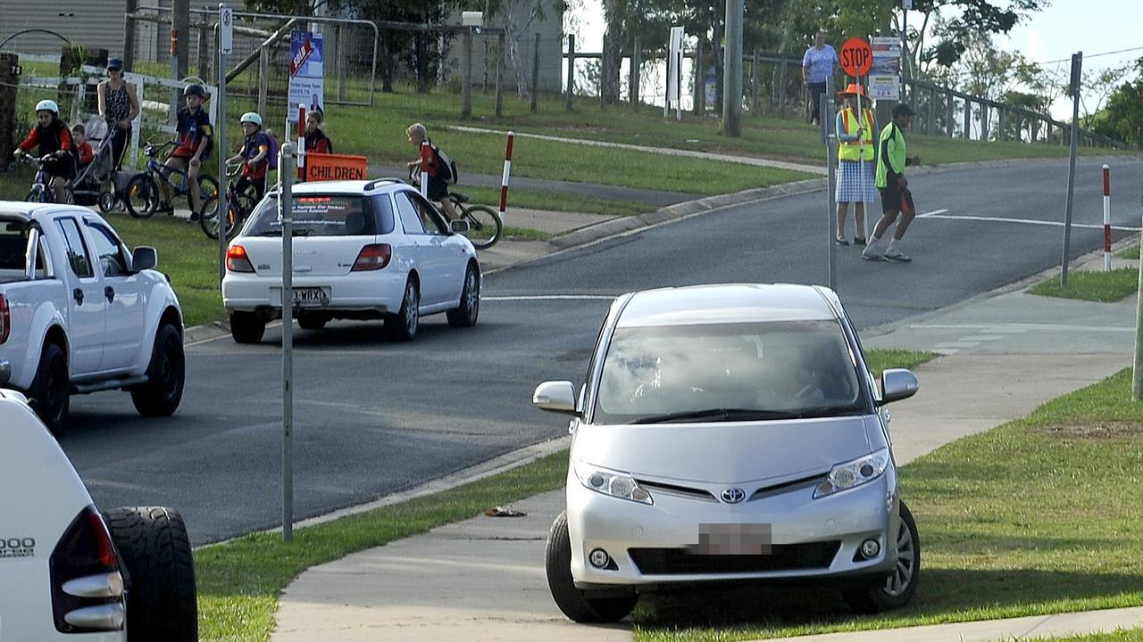 Parents’ and guardians’ vehicles in no-stopping zones creating unwanted traffic and dangerous road conditions for young students.