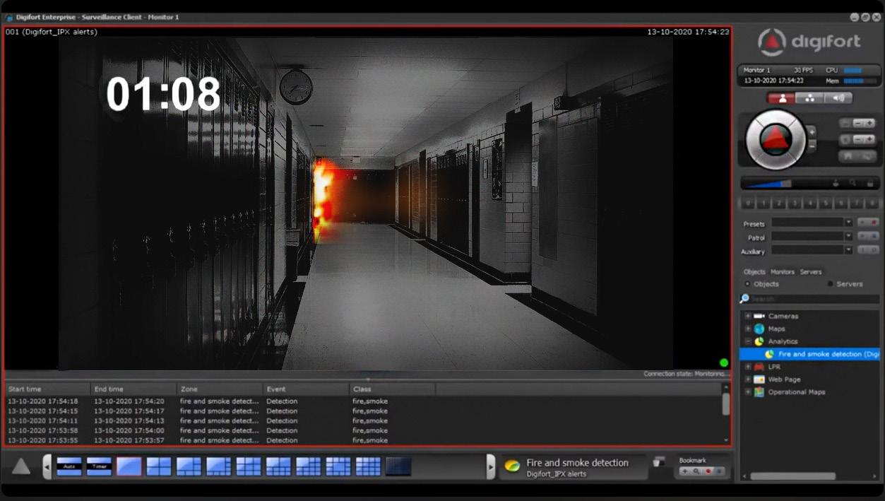 Capable of detecting smoke and triggering pre-determined alerts to operators for immediate action.