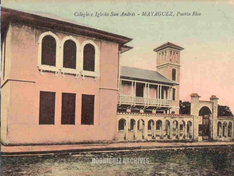 Se comenzó el primer trabajo en español en la Iglesia San Andrés, Mayagüez, aunque el trabajo misionero data de 1905. Inició su labor educativa tras la construcción de un edificio de madera de dos pisos, gracias a la iniciativa del Rvdo. P. Frank A. Saylor. Se ofrecía educación industrial, costura y bordado. El Colegio San Andrés (escuela elemental hasta 8vo grado) comenzó en 1918.