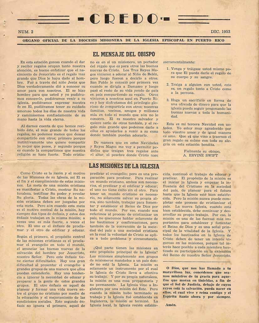 Para el Equipo Editorial de CREDO, la producción de este número ha sido un tránsito hermoso que nos ha permitido adentrarnos en una Iglesia Episcopal que, a través de los años, se reafirmó en su identidad puertorriqueña. La llegada del Anglicanismo a Puerto Rico, la fundación de los primeros trabajos misioneros y el comienzo del servicio en los campos y zonas más remotas marcaron significativamente esas primeras décadas de esparcimiento. A lo largo de los años, hemos sido testigos también del desarrollo de un clero puertorriqueño, la reafirmación del trabajo del laicado y el crecimiento de nuestras instituciones.