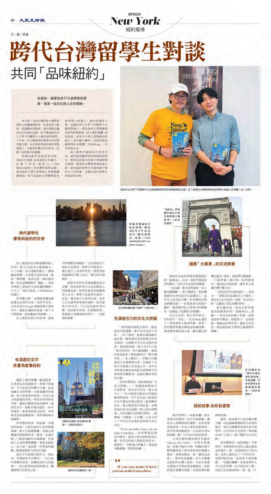 跨代台灣留學生對談 共同「品味紐約」