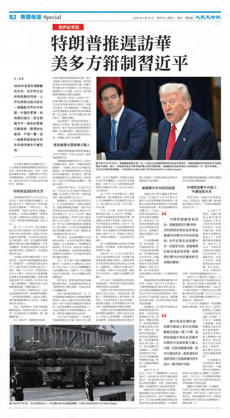 ⋯⋯特朗普推遲訪華 美多方箝制習近平